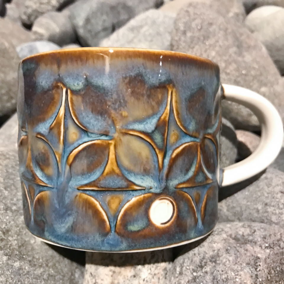 Pruunikas, sinise varjundiga glasuur toob mustri hästi esile.