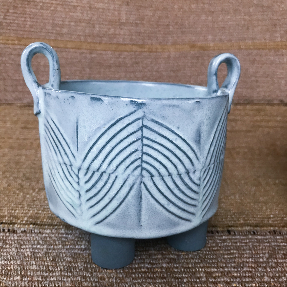 Käsitsi värvitud tumesinisest savist türkiissinise glasuuriga jalgadega toos. Kujundus isetehtud templiga. Sobib hästi pähklite jms pakkumiseks lauale.